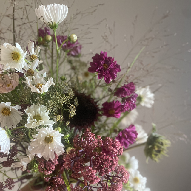 la saison de fleurs fraîches et locales et de Mars à Novembre. En dehors de ces mois vous recevrez un composition de fleurs séchées ou couronne de Noël.